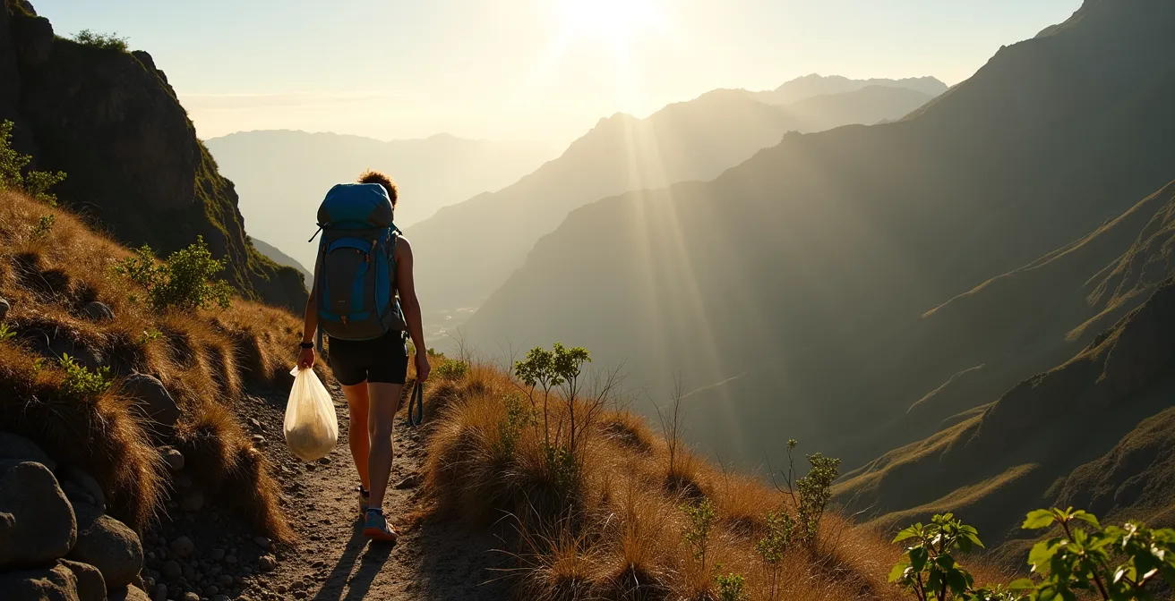 Lorsque vous laissez votre bouteille vide, vos emballages ou vos restes derrière vous, vous ne faites pas que salir un sentier. Vous ajoutez littéralement du poids et un coût au fardeau logistique des Mafatais. Remonter ses propres déchets n’est donc pas un acte militant, c’est le minimum syndical pour ne pas imposer vos frais aux autres. Votre sac à dos doit être un système en circuit fermé : ce que vous amenez plein, vous le remontez vide. C’est aussi simple et aussi fondamental que cela.